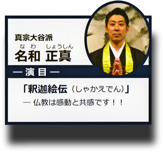 イケメン優男にして、辻説法絵解きをこなす猛者。サーフィンと家族をこよなく愛す 36歳(2児のパパ)。なにげない日常の話から『お釈迦さまの生涯』を語ります。清須市在住