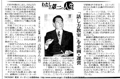 産経新聞に取材していただいた時の記事をご紹介します。 |